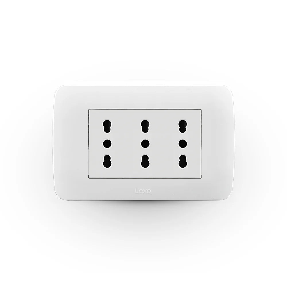 Tomacorriente triple de alta capacidad diseñado para aplicaciones residenciales e industriales. Soporta intensidades de 10 a 16A, permitiendo la conexión simultánea de múltiples dispositivos sin comprometer la seguridad. Construcción robusta con contactos de cobre para garantizar conductividad óptima y durabilidad prolongada. Ideal para espacios que requieren distribución de energía confiable y eficiente. Cumple con estándares de seguridad eléctrica vigentes.